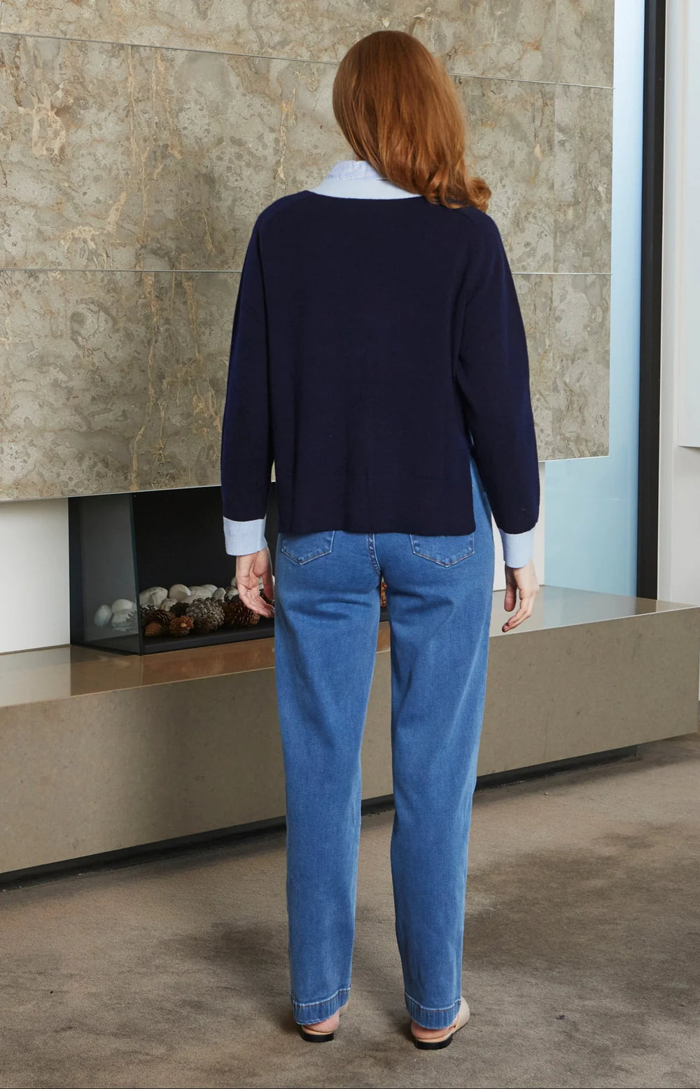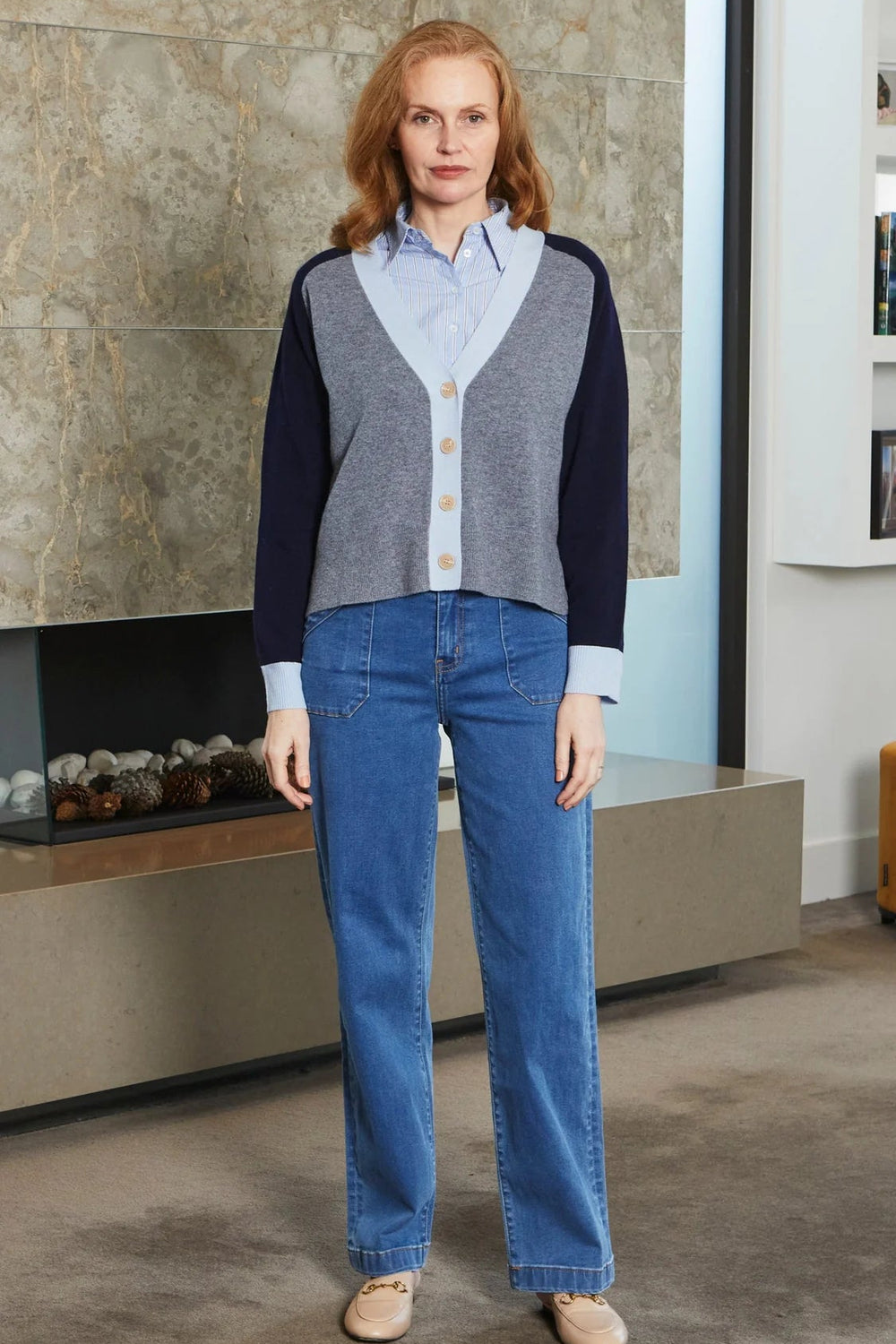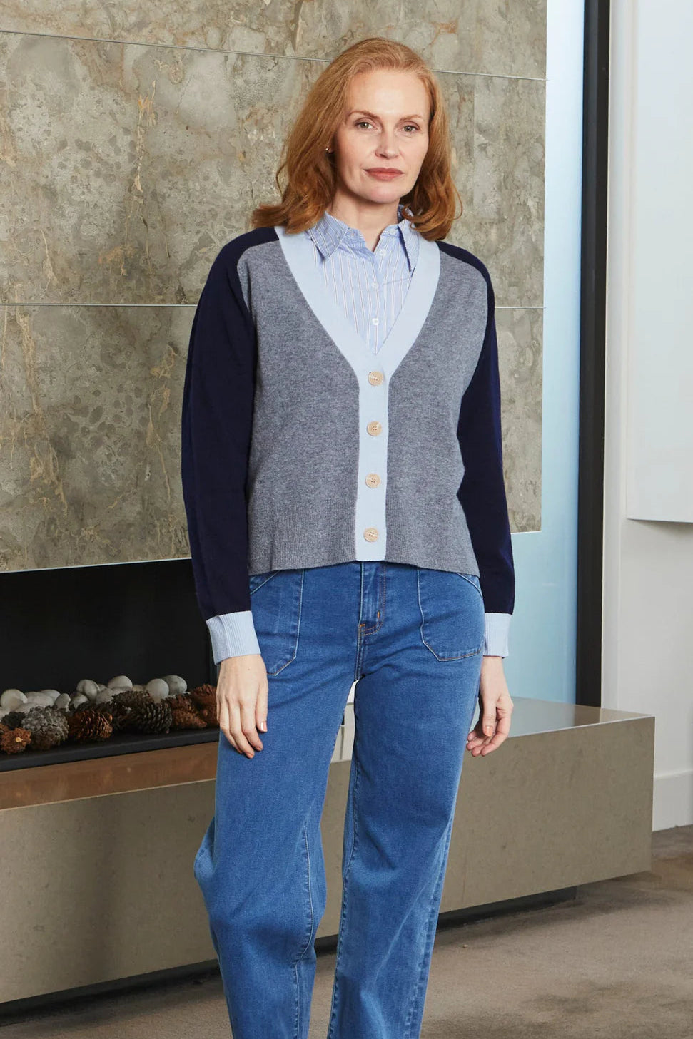V NECK COLOUR BLOCK RELAXED FIT CARDIGAN