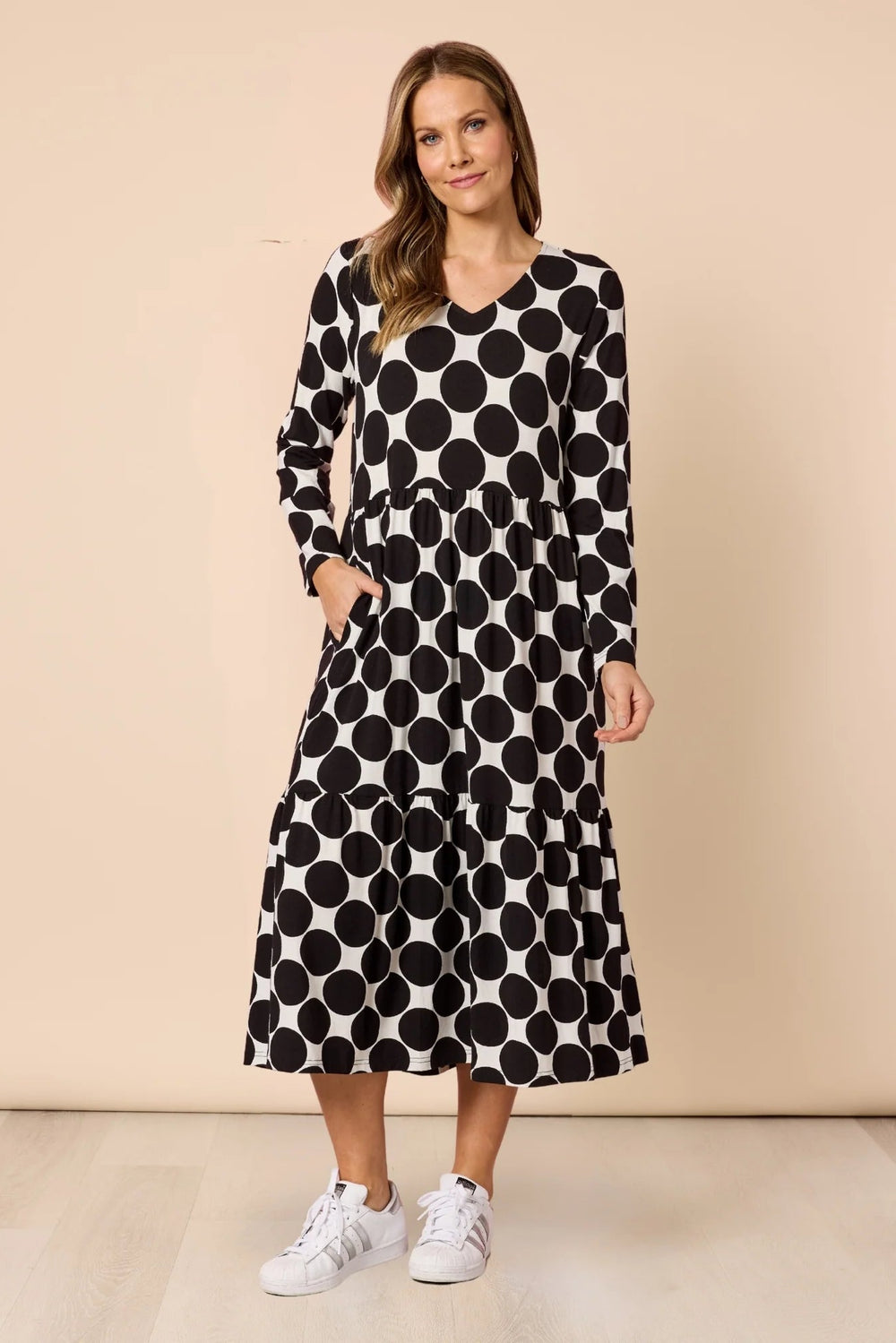 - A celebration of movement and modern pattern, the Très Bien Spot Dress combines effortless elegance with everyday comfort.