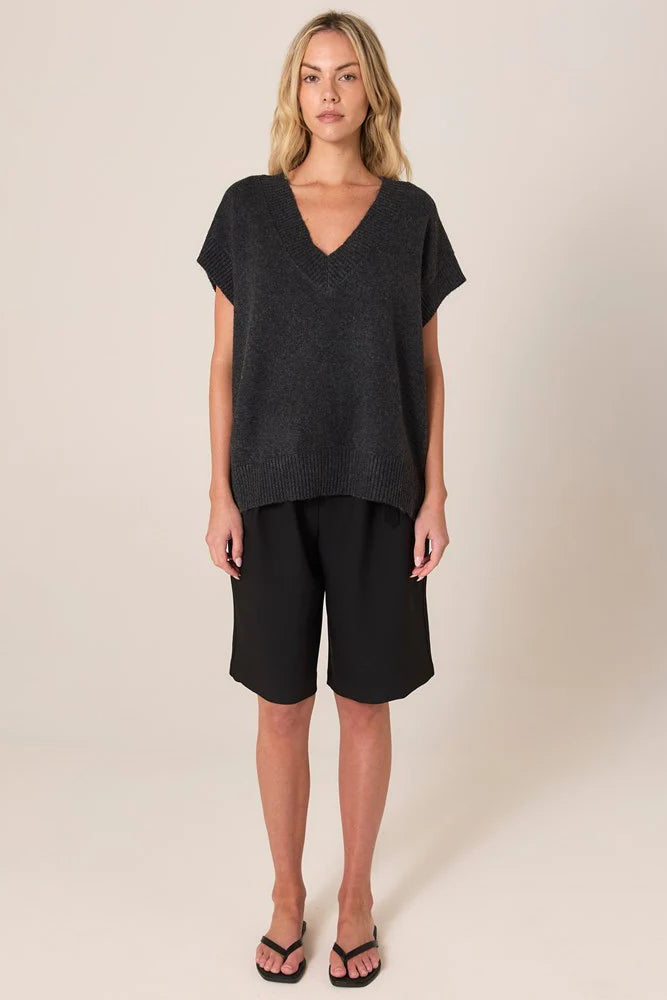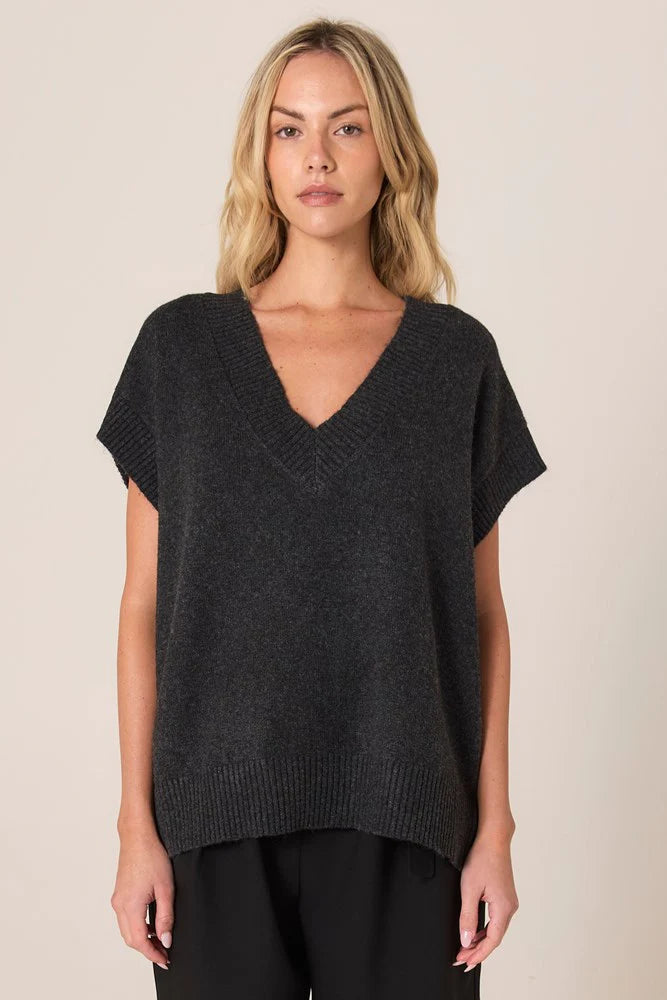 Rae V-Neck Vest - Black Marle