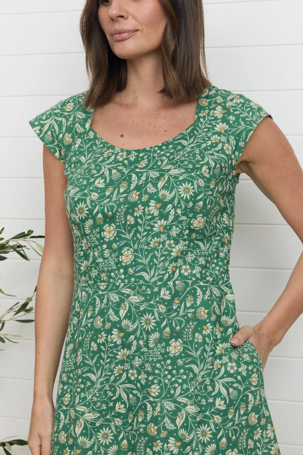 Beautifully shaped and effortlessly wearable, the Elsy Dress brings a touch of tailored charm to your summer wardrobe. With its softly rounded neckline, gentle banded waist, and subtly structured A-line skirt, this piece creates a flattering silhouette that celebrates curves and offers ease through the hips and tummy.