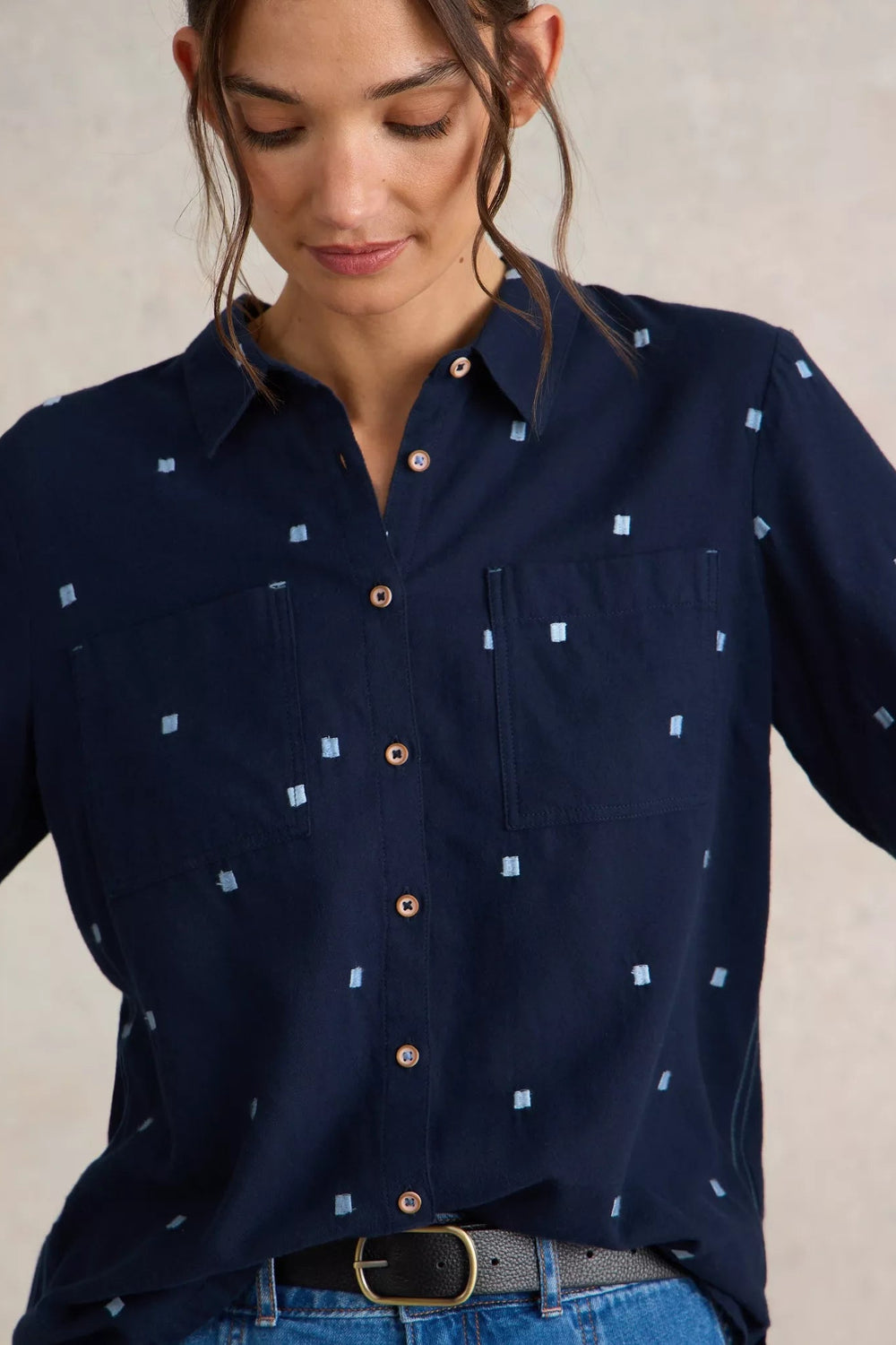 Contrast embroidery. The instant upgrade we felt the button-up shirt really needed. When you see the Sophie, we think you'll agree.