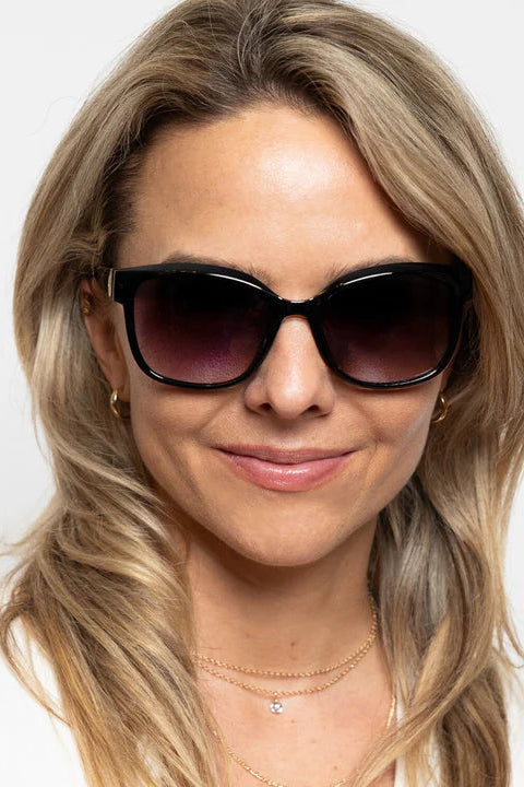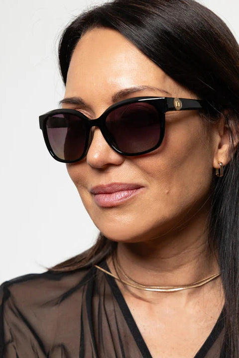 Harmony in black is the definition of understated confidence. With her sharp black frame and refined gold accents along the arms, she’s bold without being loud, like a favourite song on repeat. Her square silhouette flatters with ease, while polarised smoke lenses offer 100% UV protection for all-day comfort. Whether you’re powerwalking to a meeting or cruising into the weekend, Harmony keeps everything in tune.