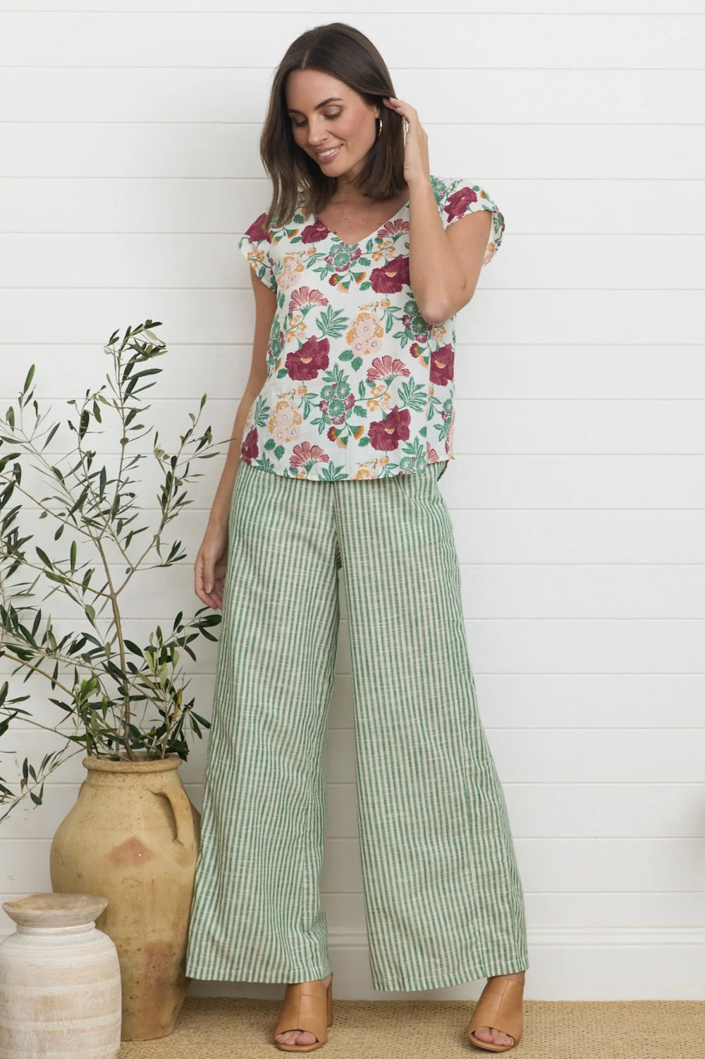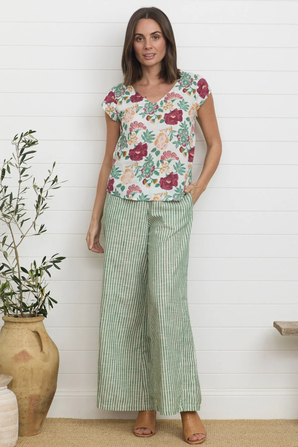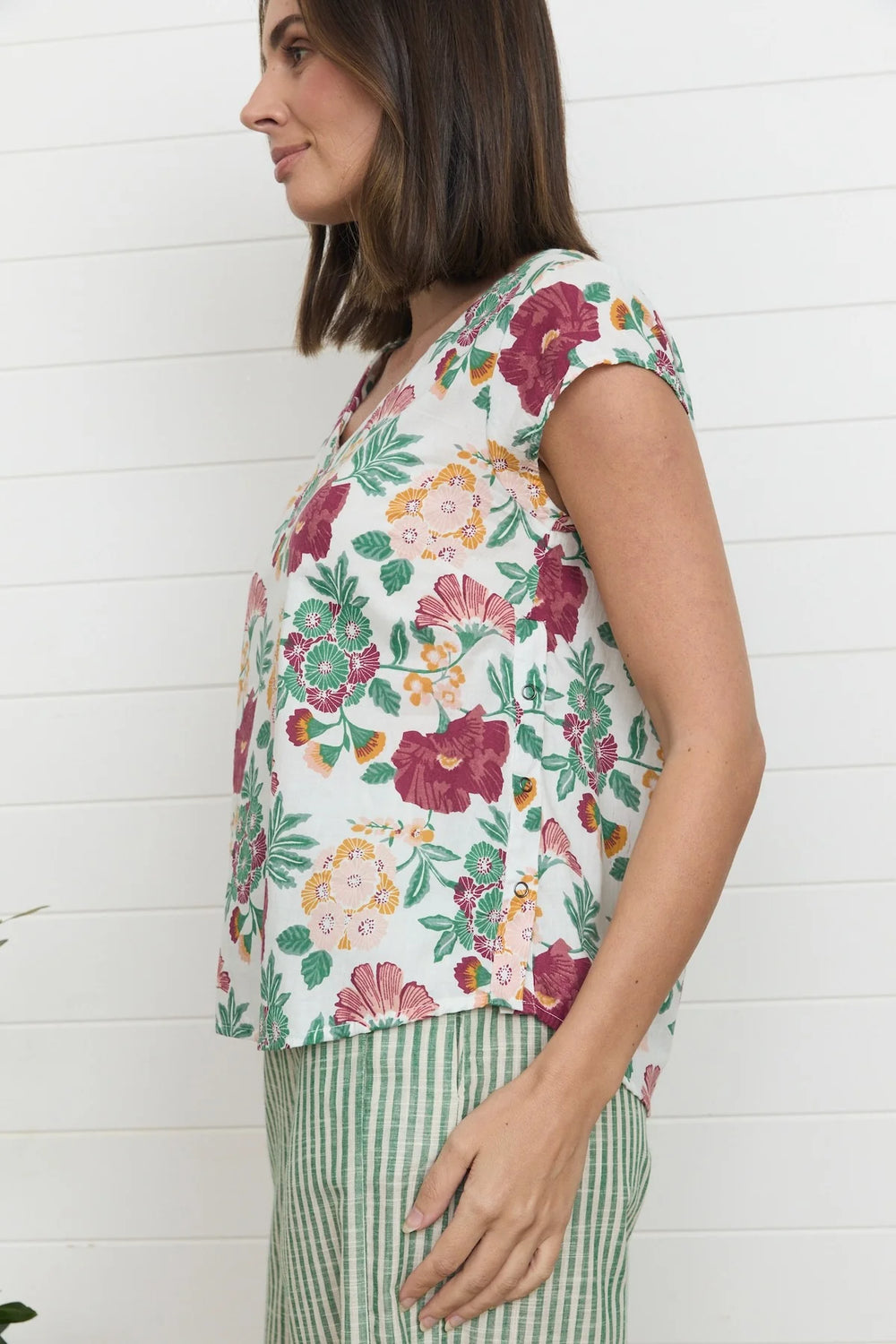 The Mika Top is inspired by our best-selling Remi, offering the same relaxed, effortless style but with a V-neck. Like the Remi it has capped sleeves, and a loose fit, making it perfect for warm summer days. A small button at the back and three press studs down the bottom left side add a touch of practicality to this easygoing design which is ideal for everyday wear.
