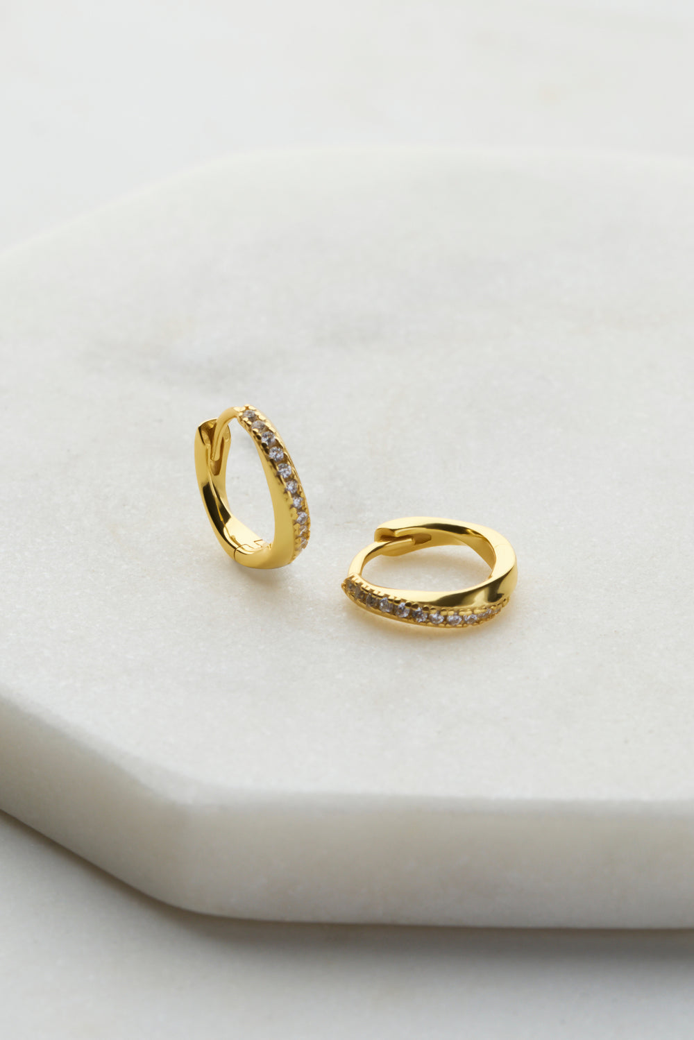 A petite huggie traced with bright crystals polished, light-catching and perfect for everyday shine.
