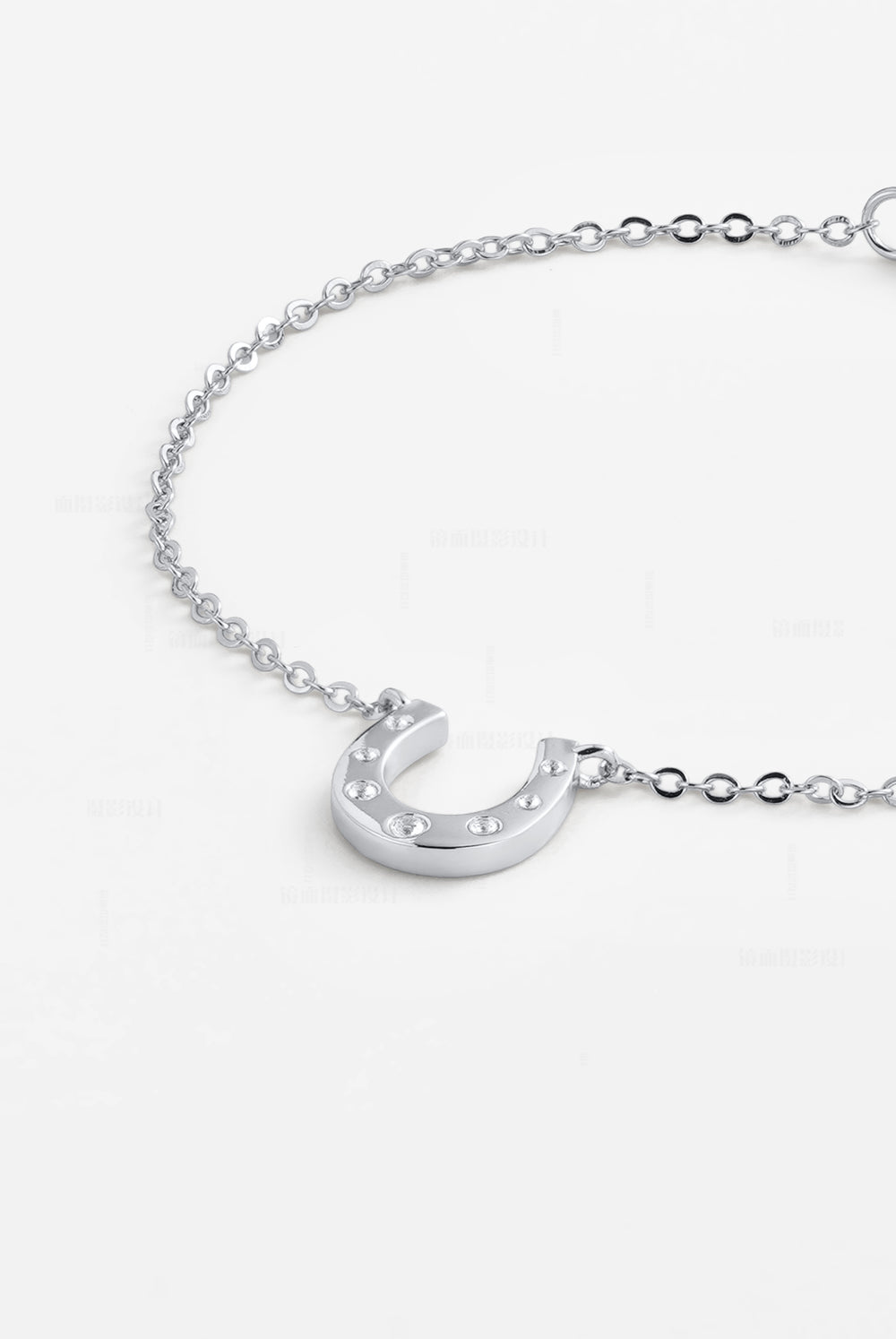 A fine silver chain bracelet finished with a horseshoe charm set with subtle stones—ideal for wearing alone as a delicate accent or layering with other bracelets for an effortlessly polished everyday look.